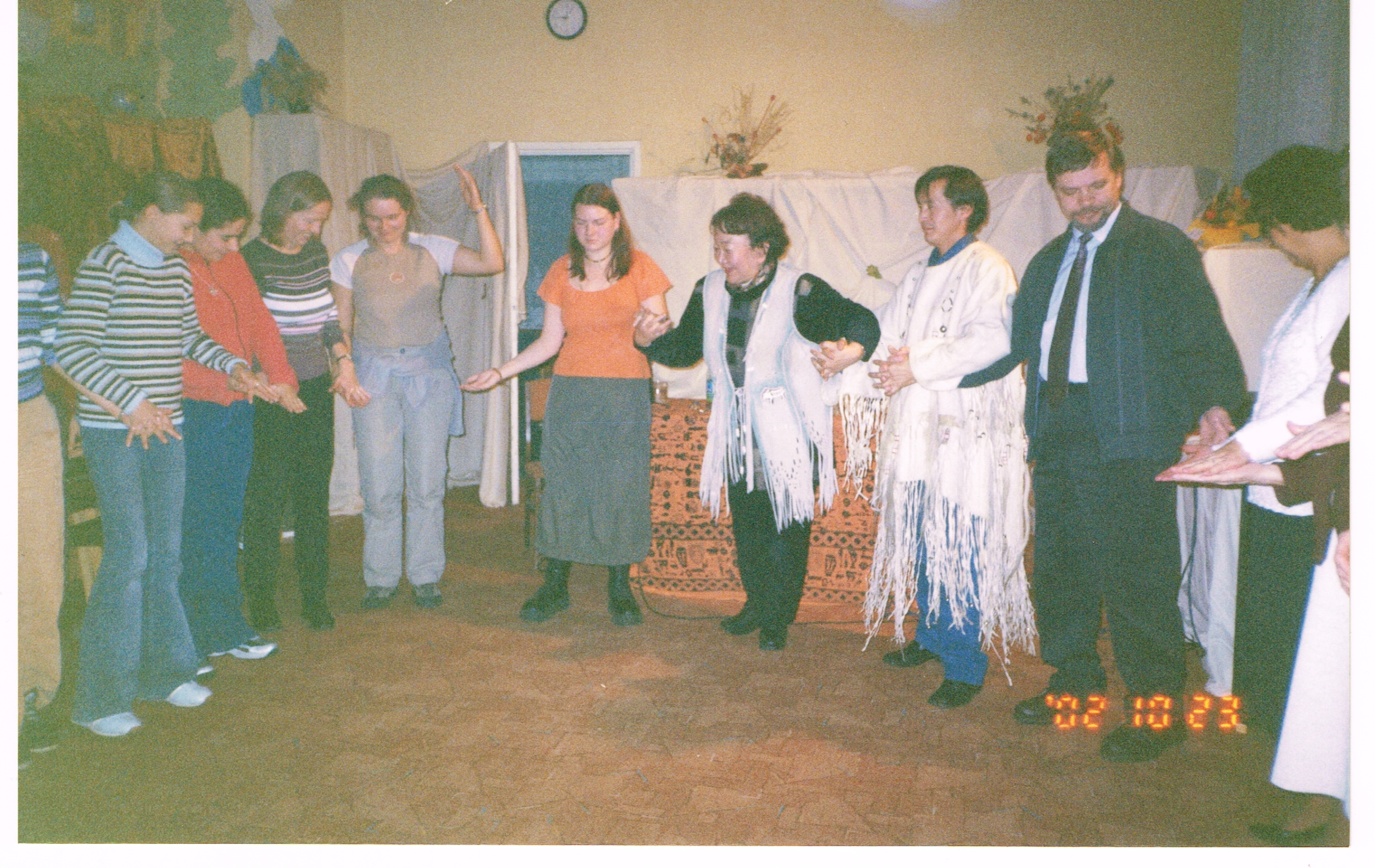 Na fotografii m.in. dr Aiza Reszetnikowa oraz Jurij Szejkin- dyrektorzy Muzeum Muzyki i Folkoru Ludów Jakucji oraz Katedry Muzykologii Uniwersytetu w Jakucku ; Fotografia kolorowa (błyszcząca) ; format 10x15 cm