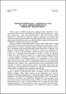 | Włodek, Zofia - Zmartwychwstanie : przemiana ciał w ujęciu średniowiecznych teologów krakowskich | 2019-11-29 |
