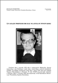 | Wojtkowski, Julian - Ś.p. ksiądz profesor dr hab. Władysław Piwowarski | Nov 29, 2019 |