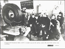 Na zdjęciu uczniowie wraz z nauczycielem podczas lekcji ; w prawym dolnym rogu informacja o wydawcy: KAW-archiwum ; fotografia czarno-biała (błyszcząca) ; format 21 x 28 cm