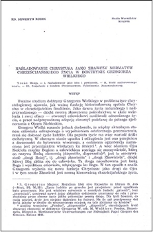 Title: Naśladowanie Chrystusa jako zbawczy normatyw chrześcijańskiego życia w doktrynie Grzegorza Wielkiego