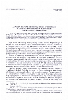 | Sztychmiler, Ryszard - Aspekty prawne rodzenia dzieci w rodzinie w świetle dokumentów roboczych Soboru Watykańskiego II | Dec 2, 2019 |
