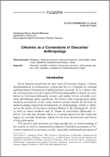 Title: "L'Homme" as a cornerstone of Descartes' anthropology