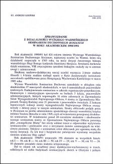 Title: Sprawozdanie z działalności Wyższego Warmińskiego Seminarium Duchownego "Hosianum" w roku akademickim 1990/1991