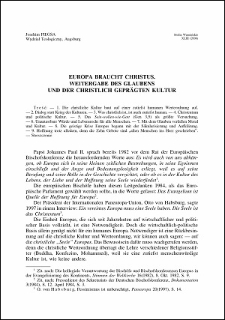 Europa potrzebuje Chrystusa : przekaz wiary i zakorzenionej w chrześcijaństwie kultury