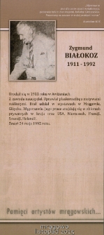 Informator do wystawy "Pamięci artystów mrągowskich" z datą: listopad 2015 ; zawiera biogram Zygmunta Białokoza ; druk kolorowy, dwustronny ; format 13 x 28,5 cm