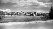 Widok na centrum Mrągowa od ówczesnej ul. Lenina, obecnie ul. Mrongowiusza ; fotografia czarno-biała ; format 5,7 x 8,8 cm ; negatyw fotograficzny