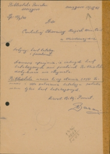 Dokument (z datą 17.07.1948 r.) wystosowany przez kierownika Biblioteki Powiatowej w Mrągowie, Władysława Barana, do Centralnej Zbiornicy Książek w Miedzeszynie ; rękopis jednostronny ; format 15 x 21 cm
