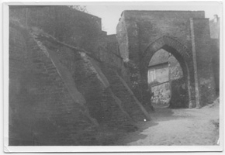 Fotografia czarno biała ; Stan zachowania: bardzo dobry ; Brama Młyńska w Pasłeku, stan po zniszczeniach wojennych w 1945 r. ; Fotografia wykonana przez 65 Drużynę przy IIb Liceum Ogólnokształcącego w Pasłęku