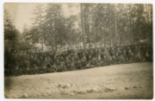 Stan zachowania: bardzo dobry ; Jednostka wojska polskiego do której Władysław Sienicki trafił prawdopodobnie w 1919 r. Mundury i czapki polskie. Widoczne karabiny maszynowe (w tym Mosin i Mausery). Kilku oficerów, sierżanci, piechota. Prawdopodonie„Błękitna armia” gen. Józefa Hallera ; Zdjęcie z kolekcji Władysława Sienickiego, który został wcielony do armii carskiej zaraz po wybuchu I wojny światowej. Dostał przydział do Witebska, gdzie przebywał prawdopodobnie do początków 1916 r. Tam też został podoficerem armii carskiej. Już w 1916 r. został skierowany na front do walki z Niemcami, gdzie dostał się do niewoli. Osadzono go w obozie dla jeńców wojennych w Schneidemühl (Piła), skąd w marcu 1917 r. wysłał pocztówkę do rodziny. Na początku 1918 r. został przeniesiony do obozu jenieckiego w Preußisch Holland (Pasłęk) w Prusach Wschodnich. Tam doczekał końca wojny. 22 września 1918 r. wysłał do rodziny swoją fotografię z tego obozu. Z Pasłęka przywiózł do domu kolekcję fantastycznych czarno-białych zdjęć doskonale ilustrujących życie oficerów oraz zwykłych żołnierzy armii carskiej w tym obozie. W 1919 r. Władysław Sienicki wstąpił do armii gen. Józefa Hallera.