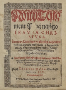 Z dozwoleniem Starszych. Pod rozsądek Kościoła S. Powszechnego Rzymskiego wszystko niech podlęże. ; [1] karta, 41, [1 czysta], 890 [właściwie 891], [1] strona, [28] kart ; 4° ; Adres wydawniczy: W Krakowie : W Drukarni Andrzeia Piotrkowczyka, [po 20 IV] 1593 ; Strona tytułowa czerwono-czarna, w ozdobnej ramce typograficznej; tekst w ramkach liniowych ; Błąd w liczbowaniu: strona 48 wydrukowana dwukrotnie ; Pod przedmową do czytelnika data: W Krakowie v ś. Barbary, 20. dnia Kwietnia. Roku [...] MDXCIII