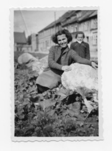 Title: Zenona Bełza z synem Jurkiem przy ul. H. Sienkiewicza w Pasłęku