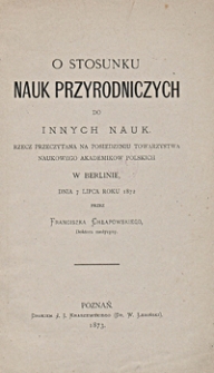 | Chłapowski, Franciszek (1846-1923): O stosunku nauk przyrodniczych do innych nauk. - 1873 | 2017-04-04 |