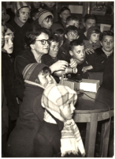 Title: [Projekcja filmu w Oddziale dla dzieci w Powiatowej i Miejskiej Biblioteki Publicznej w Mrągowie 1963. 1]