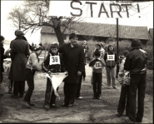 Początek trasy biegów ; fotografia czarno-biała (błyszcząca) ; format 24 x 30 cm