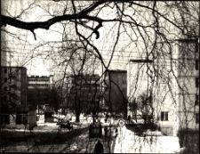 Widok na osiedle Parkowe od strony Parku Sikorskiego ; fotografia czarno-biała (błyszcząca) ; format 18 x 24 cm