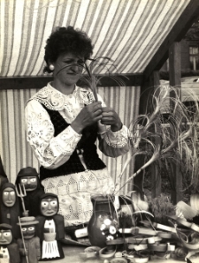 Stragan z przedmiotami sztuki ludowej na Placu Zwycięstwa (od 1997 r. Plac Piłsudskiego) ; fotografia czarno-biała (błyszcząca) ; format 18 x 24 cm