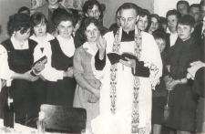 "Święcone" w Dobrym Mieście 1964 (opis wg odręcznej noty na odwrocie fotografii) ; autor fotografii nieznany ; fotografia czarno-biała (błyszcząca) ; format 9 x 14 cm