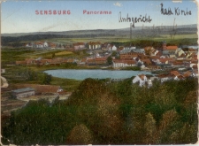 Panorama Mrągowa, widok na jeziora Czos i Magistrackie ; leporello składające się z 5 pocztówek ; pocztówki barwne (fotograficzne) ; format 9 x 14 cm ; na s. recto napisy odręczne