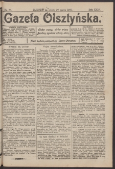 Data numeru: 20.03.1909 r. ; błędny numer gazety (powinno być: nr 34) ; utrudnione do odczytania fragmenty kolumn pierwszej i trzeciej strony (zagięcie)